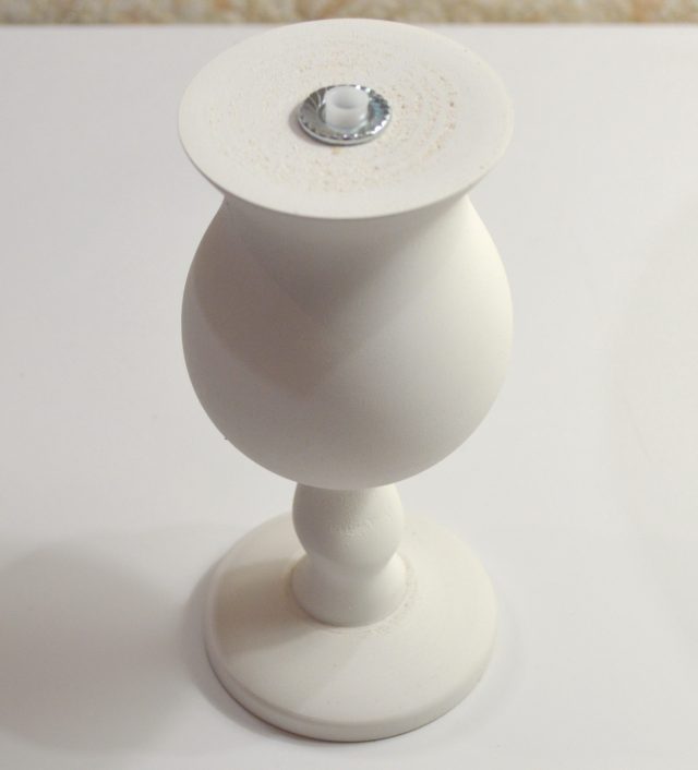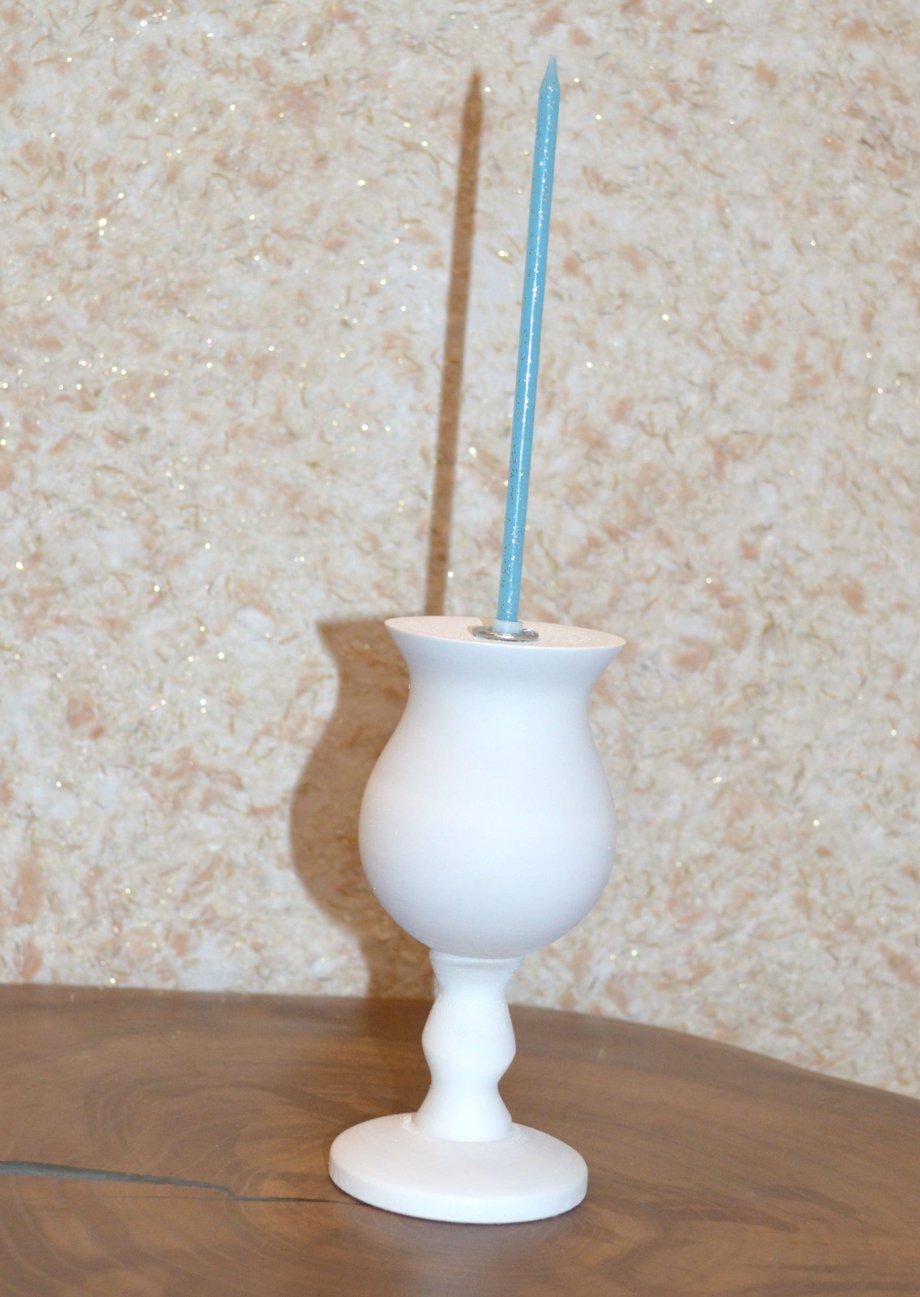Красивый, белый подсвечник в форме бутона цветка, под маленькую свечу. Выполнен из массива берёзы, с оригинальным точением ножки со смещением. Высота подсвечника — 14 см. Посадочный диаметр под свечу — 5 мм (тортовые свечи). Покрыт белой лазурью. Ручная работа в единственном экземпляре. Одна свеча в комплекте.