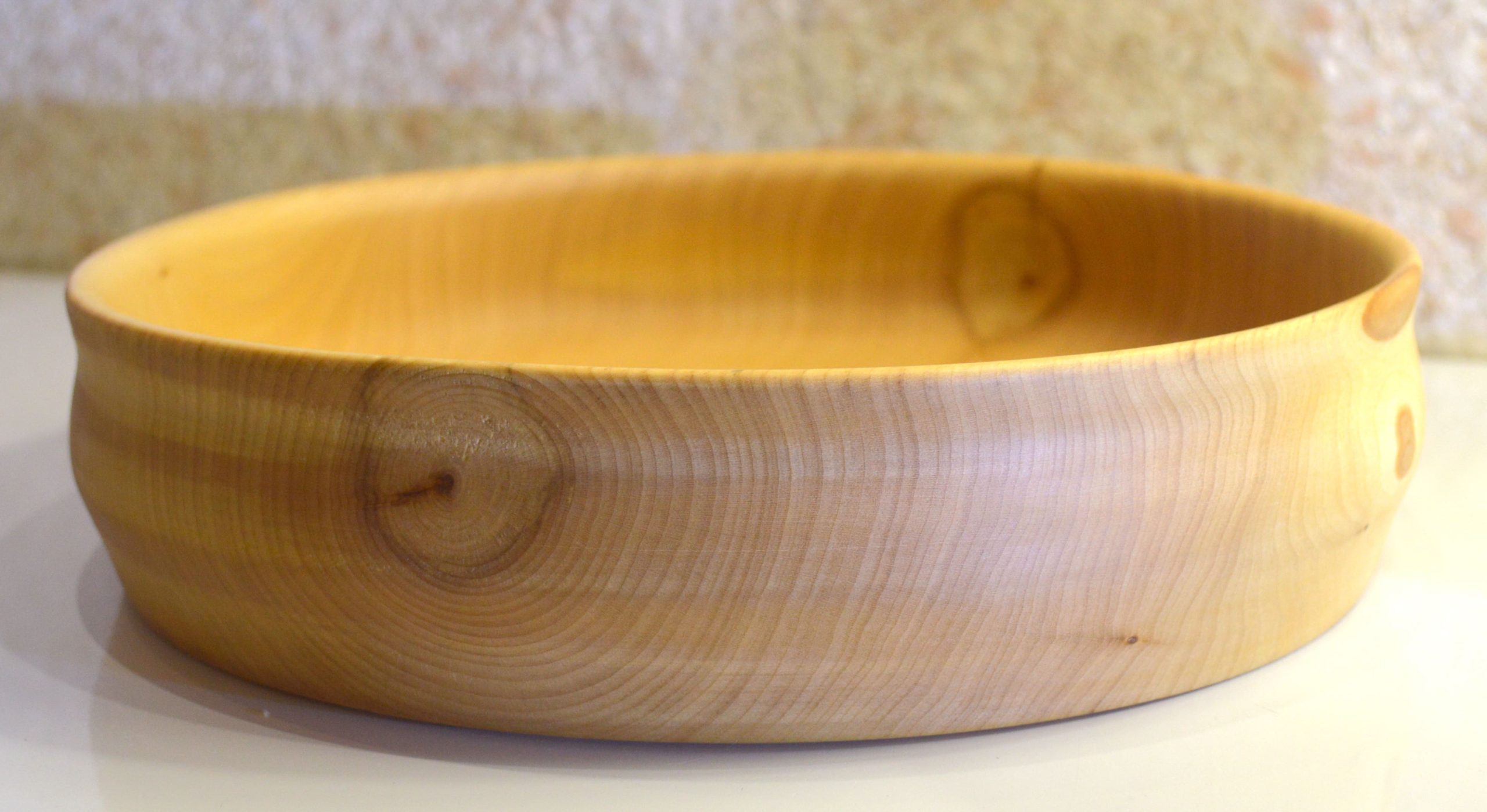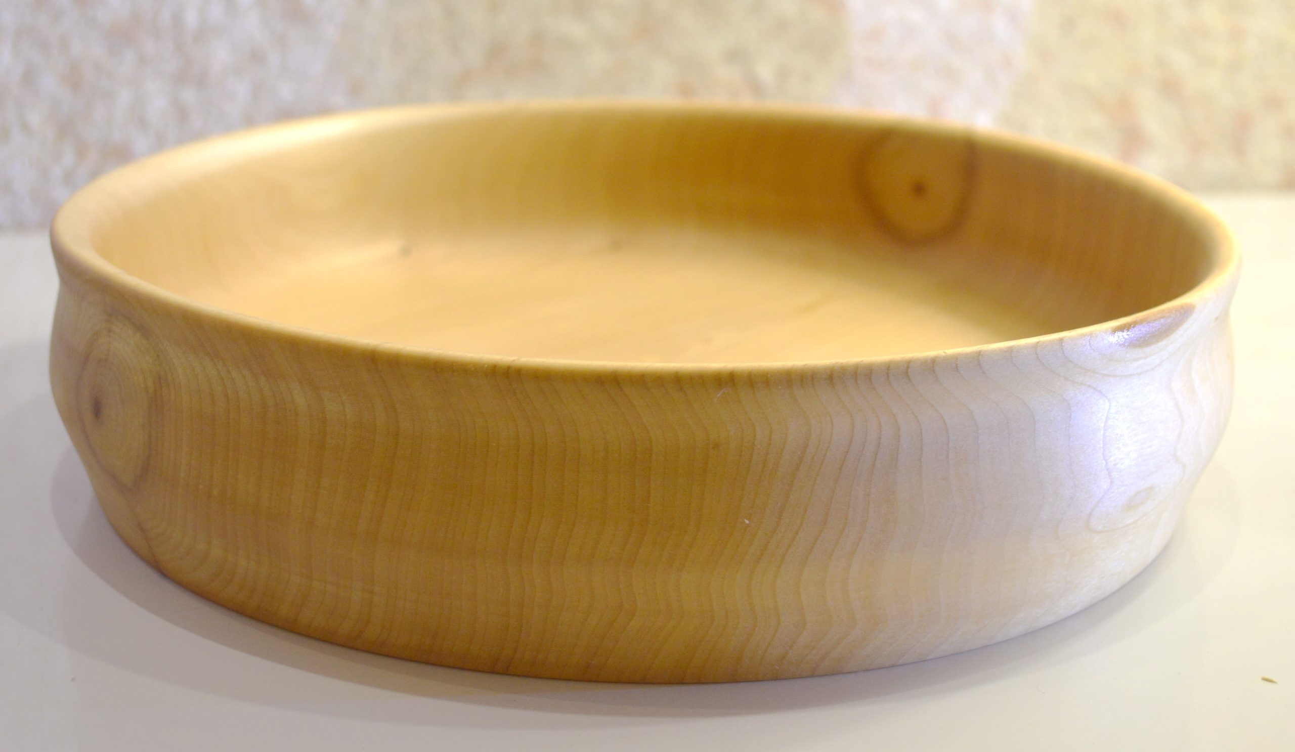 Практичное, выполненное из массива липы, широкое блюдо для конфет, печенья, орехов, фруктов и овощей. Размеры: высота — 5,5 см, диаметр — 24 см. Экологически чистое изделие. Естественный рисунок природного материала. Для защиты дерева, покрыта натуральным маслом с добавлением пчелиного воска. Ручная работа в единственном экземпляре.