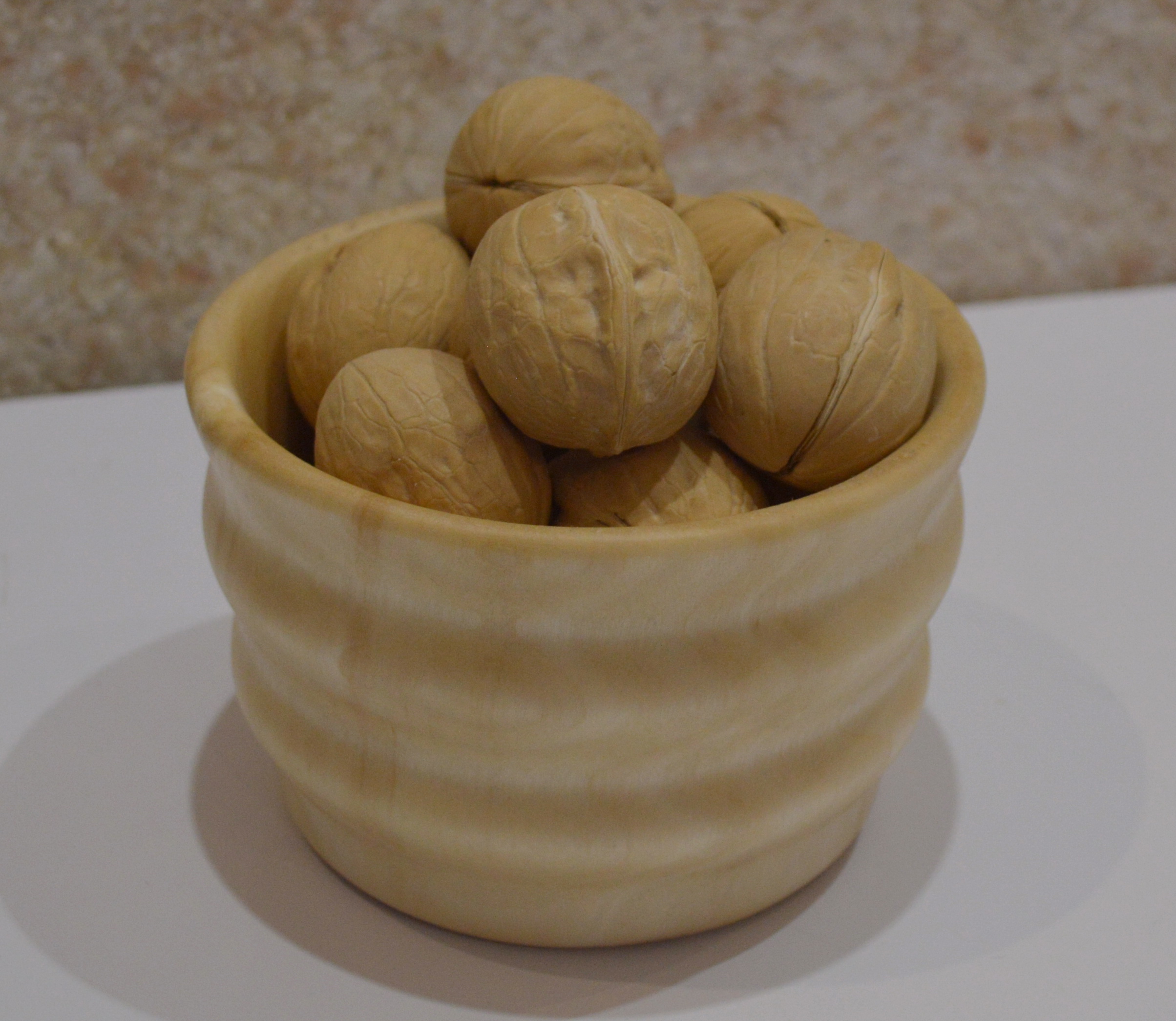 Оригинальная чаша орешница из массива тополя. Красивый, естественный рисунок живой природы. Диаметр чаши: 11 см, глубина: 7 см. Покрыта натуральным маслом с добавлением пчелиного воска.