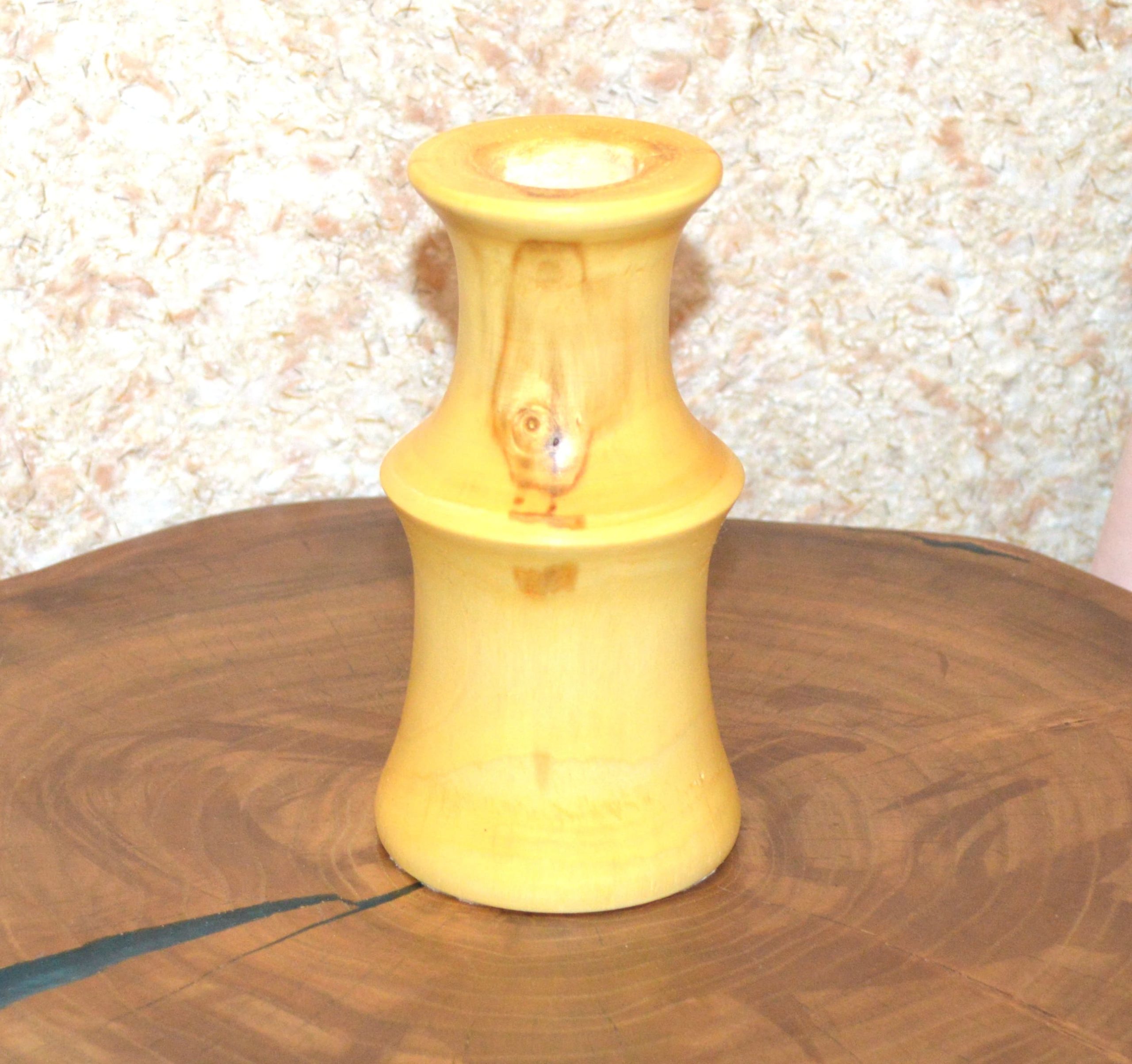 В светлой текстуре, выполненная из массива клёна ваза под цветы сухоцветы. Размеры: высота — 15,5 см, диаметр горловины под стебли — 3 см, глубина — 12 см. Естественный рисунок природного материала. Покрыта лазурью. Ручная работа в единственном экземпляре.