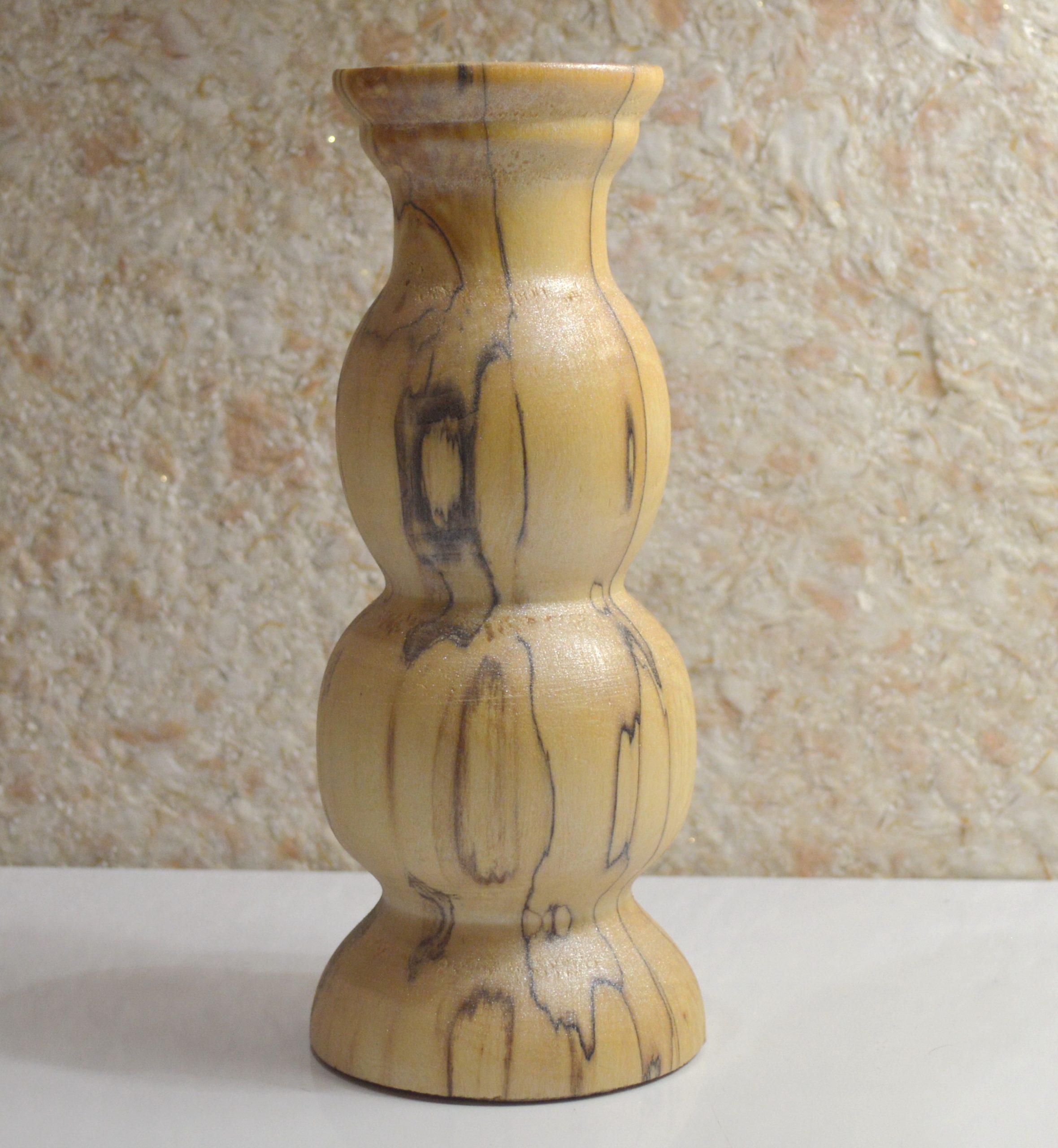 Оригинальная, выполненная из массива берёзы (шпальт) ваза под цветы сухоцветы. Размеры: высота — 19 см, диаметр горловины под стебли — 2,8 см, глубина — 14 см. Естественный рисунок природного материала. Покрыта блестящей лазурью. Ручная работа в единственном экземпляре.