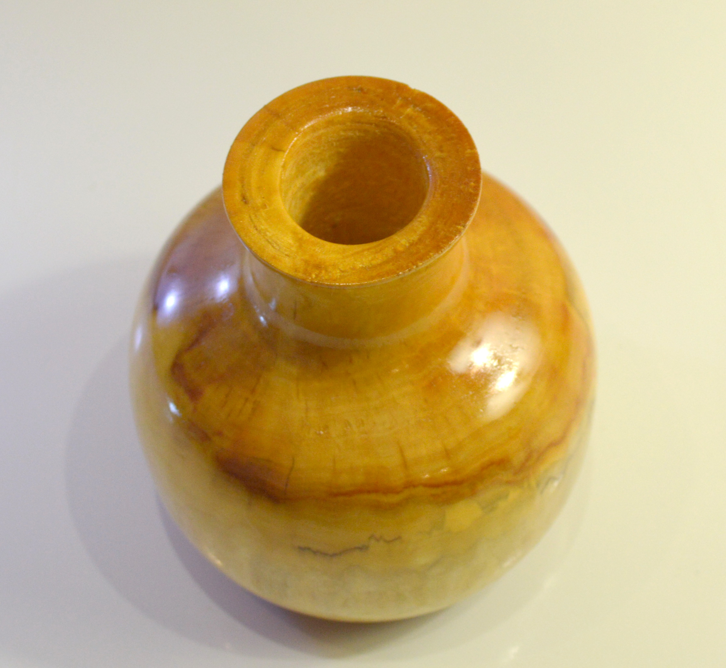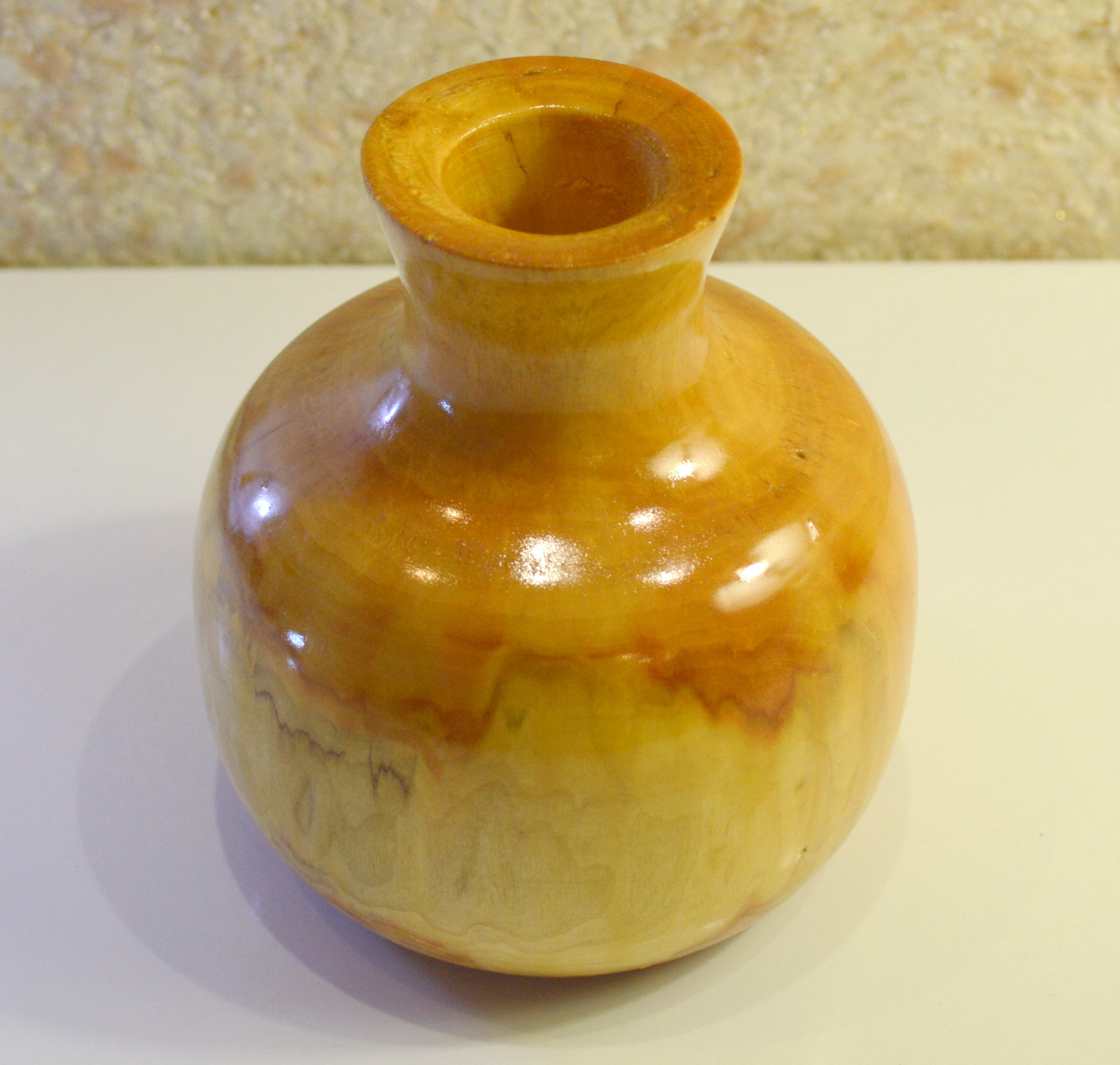 Красивая, средних размеров, выполненная из массива вяза, ваза под цветы-сухоцветы. Размеры: высота — 12 см, внешний диаметр (max) — 11 см, диаметр горловины под стебли — 2,8 см, глубина — 9,5 см. Естественный рисунок природного материала. Покрыта лаком. Ручная работа в единственном экземпляре.