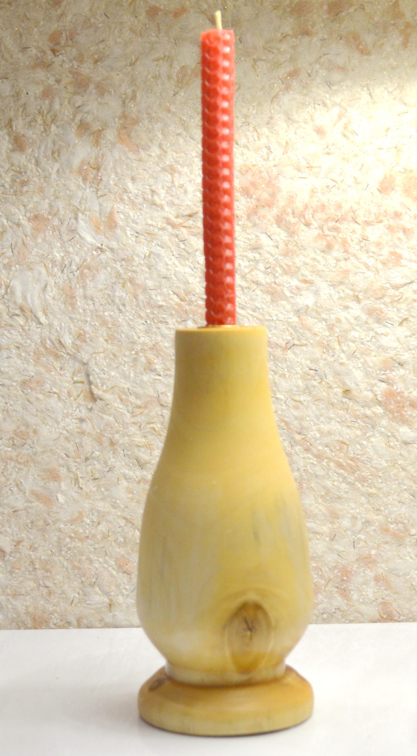 Деревянный подсвечник под свечу диаметром 14-16 мм. Выполнен из клёна. Высота подсвечника — 15,7 см. Посадочный диаметр под свечу — 1,5 см. Естественная структура рисунка дерева. Покрыт натуральным маслом, с добавлением пчелиного воска. Ручная работа в единственном экземпляре. Одна свеча в комплекте.