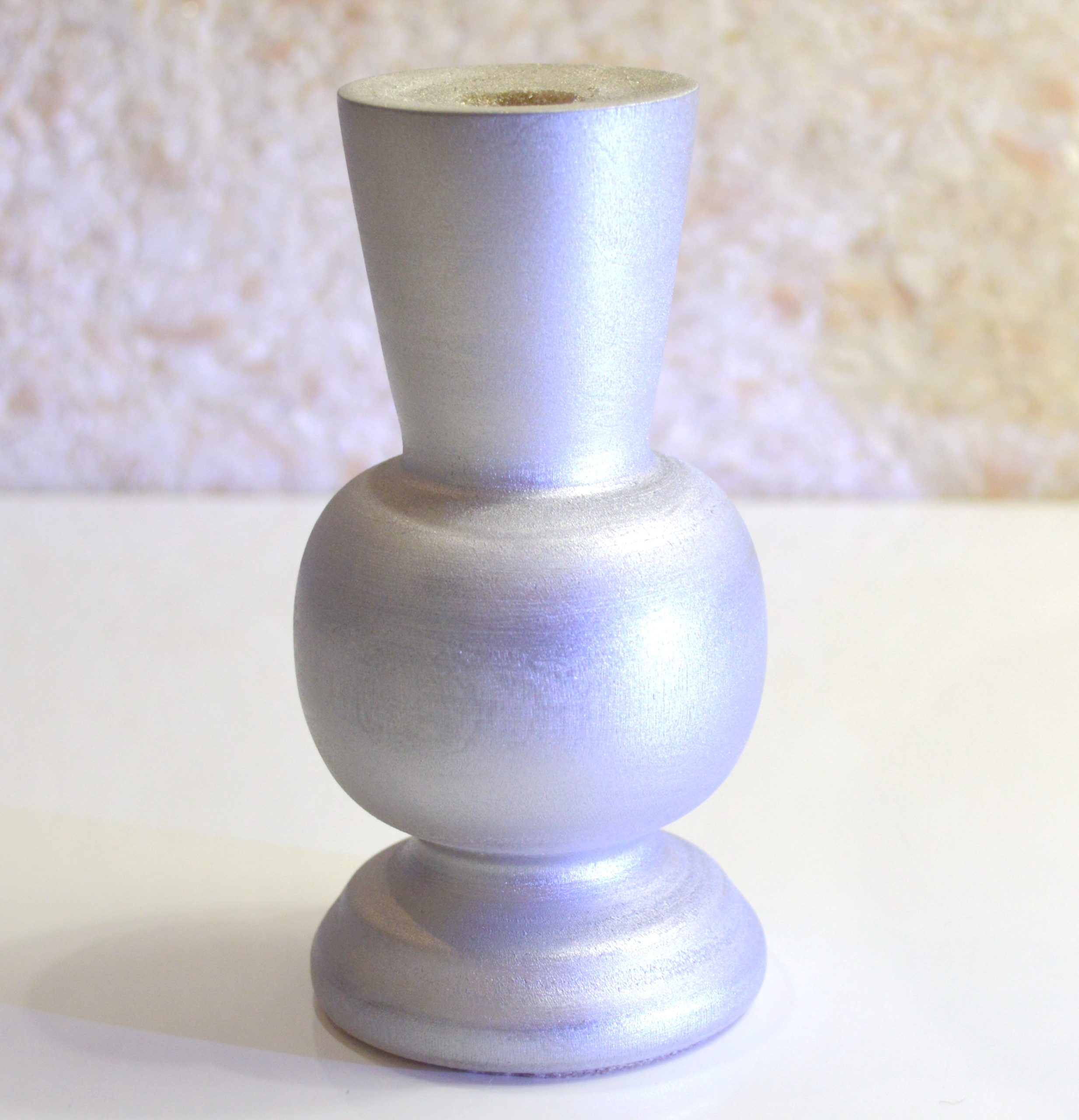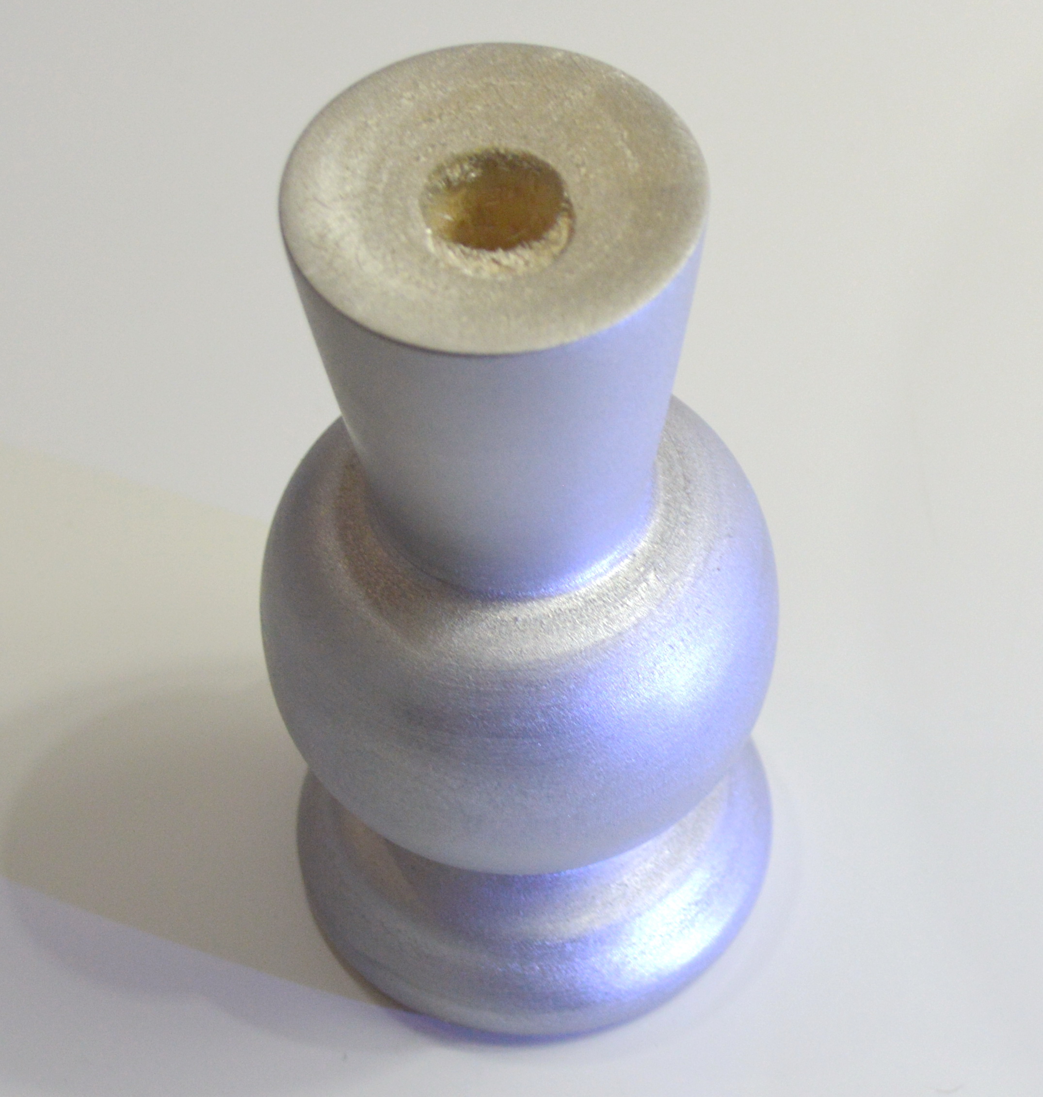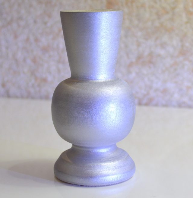 Компактная, выполненная из массива клёна ваза под цветы сухоцветы. Размеры: высота — 11,5 см, диаметр горловины под стебли — 1,3 см, глубина — 5,8 см. Покрыта серебристым лаком. Ручная работа в единственном экземпляре.