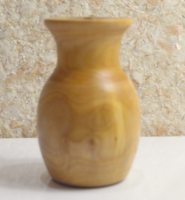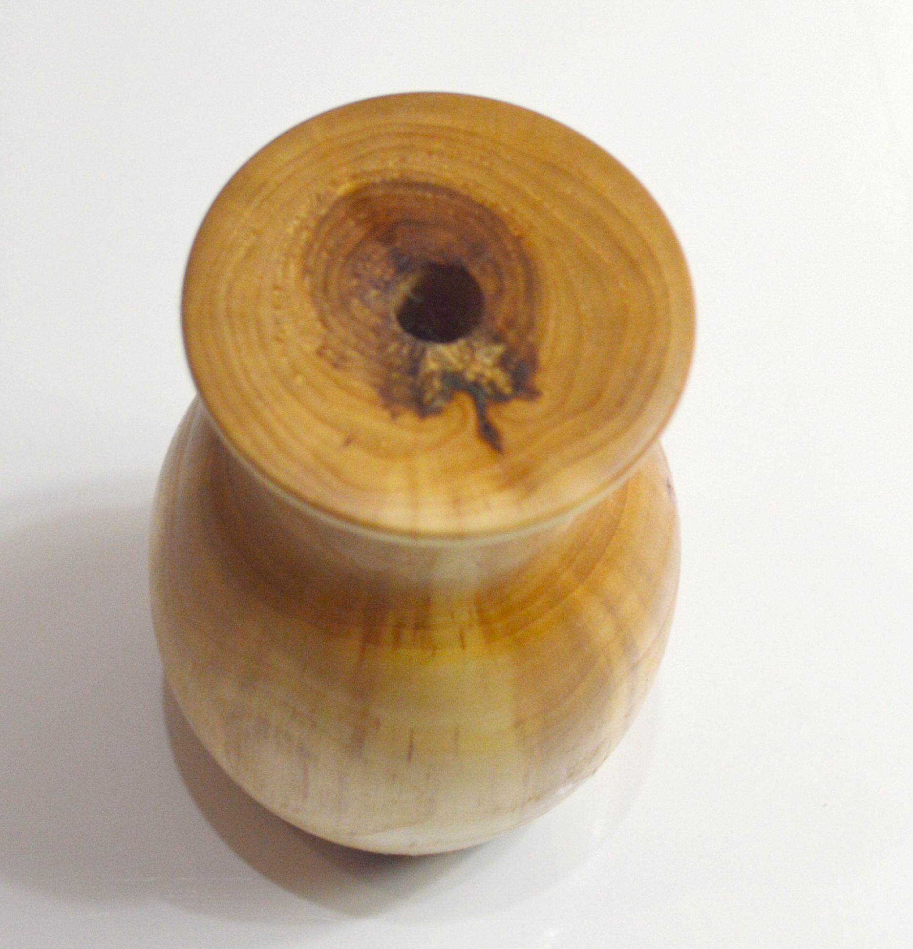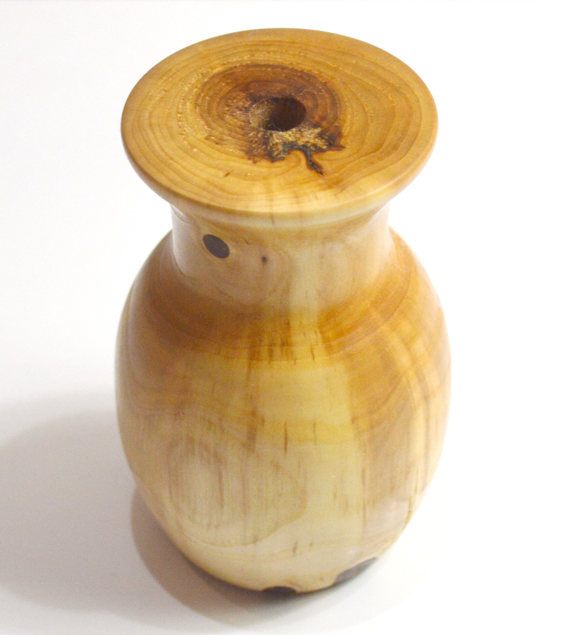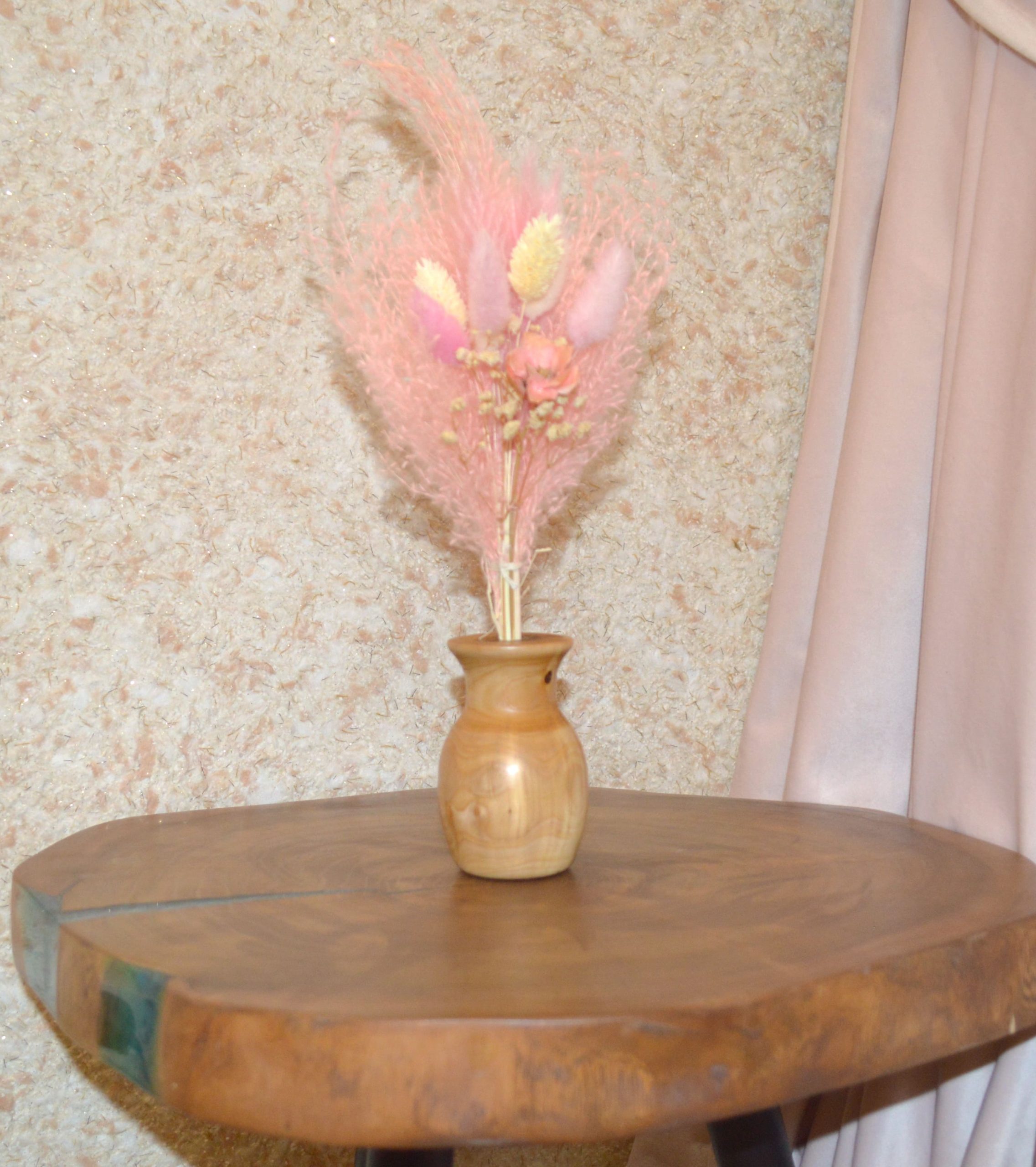 Небольшая по высоте, выполненная из массива яблони ваза под цветы сухоцветы. Размеры: высота — 9 см, диаметр горловины под стебли — 0,9 см, глубина — 6 см. Естественный рисунок природного материала. Покрыта масло-воском. Ручная работа в единственном экземпляре.
