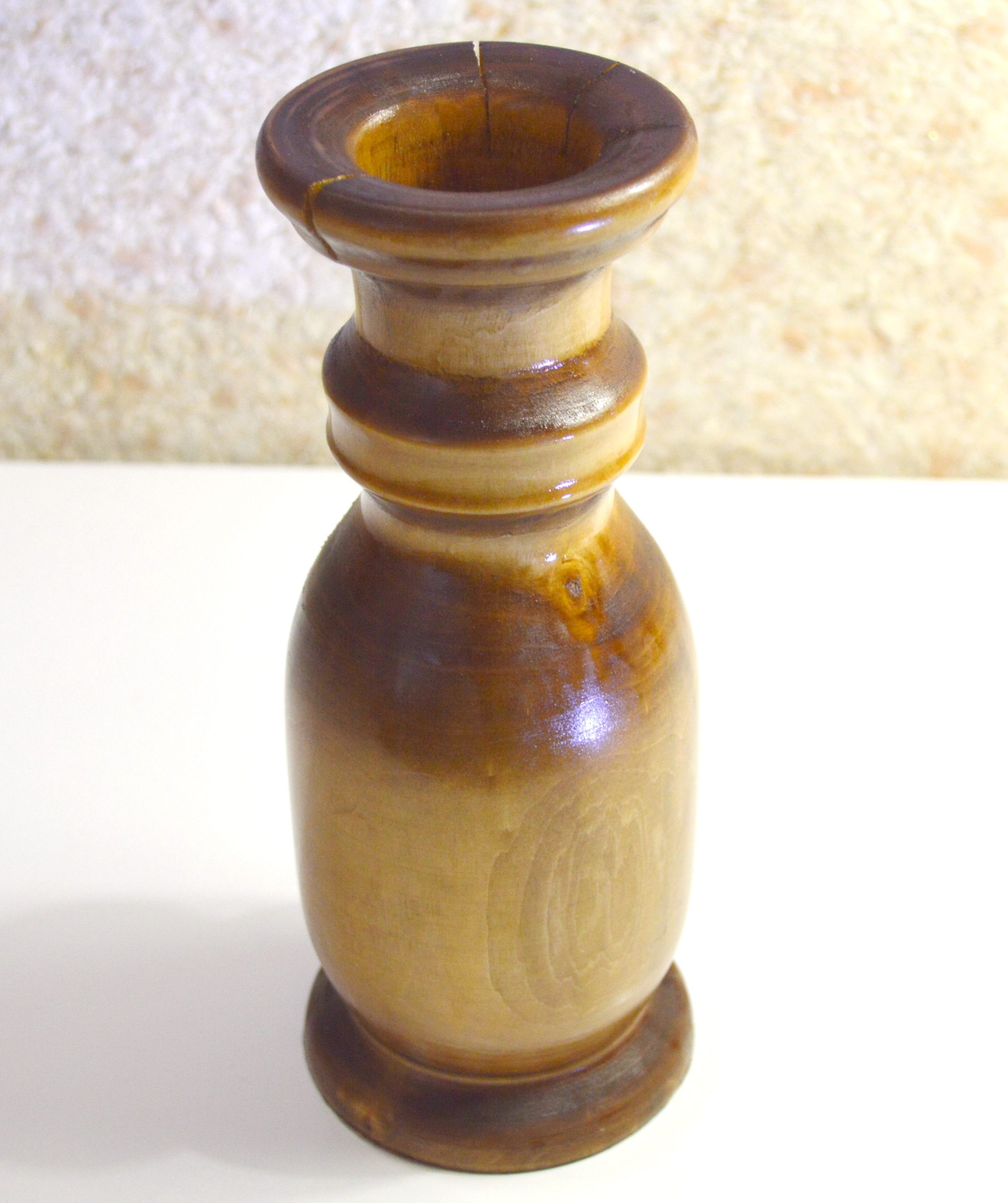 Классическая, выполненная из массива вяза ваза под цветы-сухоцветы. Размеры: высота — 20,5 см, диаметр горловины под стебли — 3,5 см, глубина — 14 см. Естественный рисунок природного материала. Покрыта колером + лак. Ручная работа в единственном экземпляре.