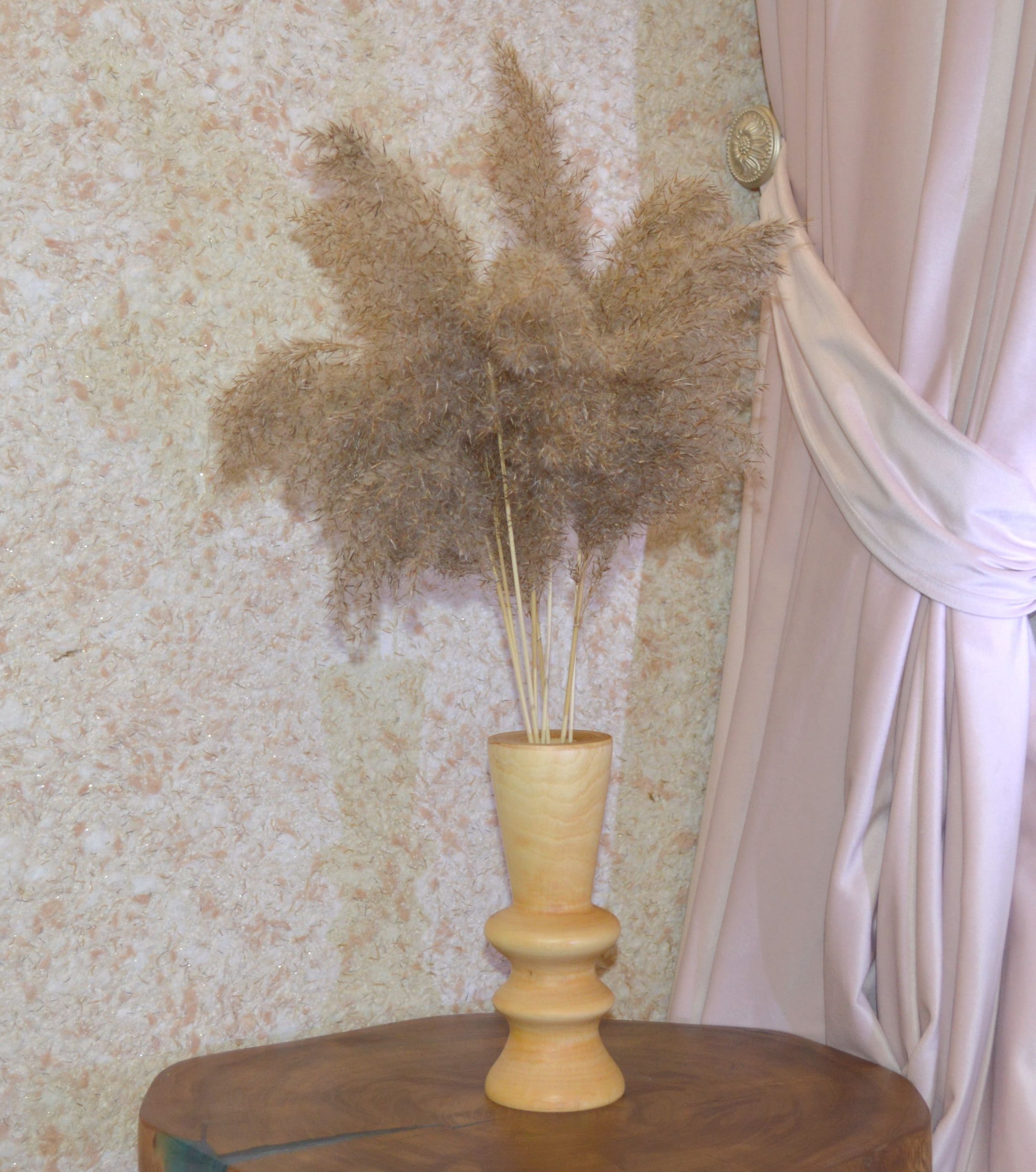 Настольная, оригинальная, выполненная из массива ольхи, ваза под цветы-сухоцветы. Размеры: высота — 19,5 см, диаметр горловины под стебли — 2,8 см, глубина — 13 см. Естественный рисунок природного материала. Покрыта масло-воском. Ручная работа в единственном экземпляре.