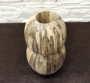 Оригинальная, небольшая ваза для сухоцветов. Материал изделия: шпальт берёзы. Высота: 16 см. Внешний диаметр: 9 см. Диаметр отверстия под цветы: 2 см, глубина — 8 см. Поверхность отполирована и покрыта полимером.