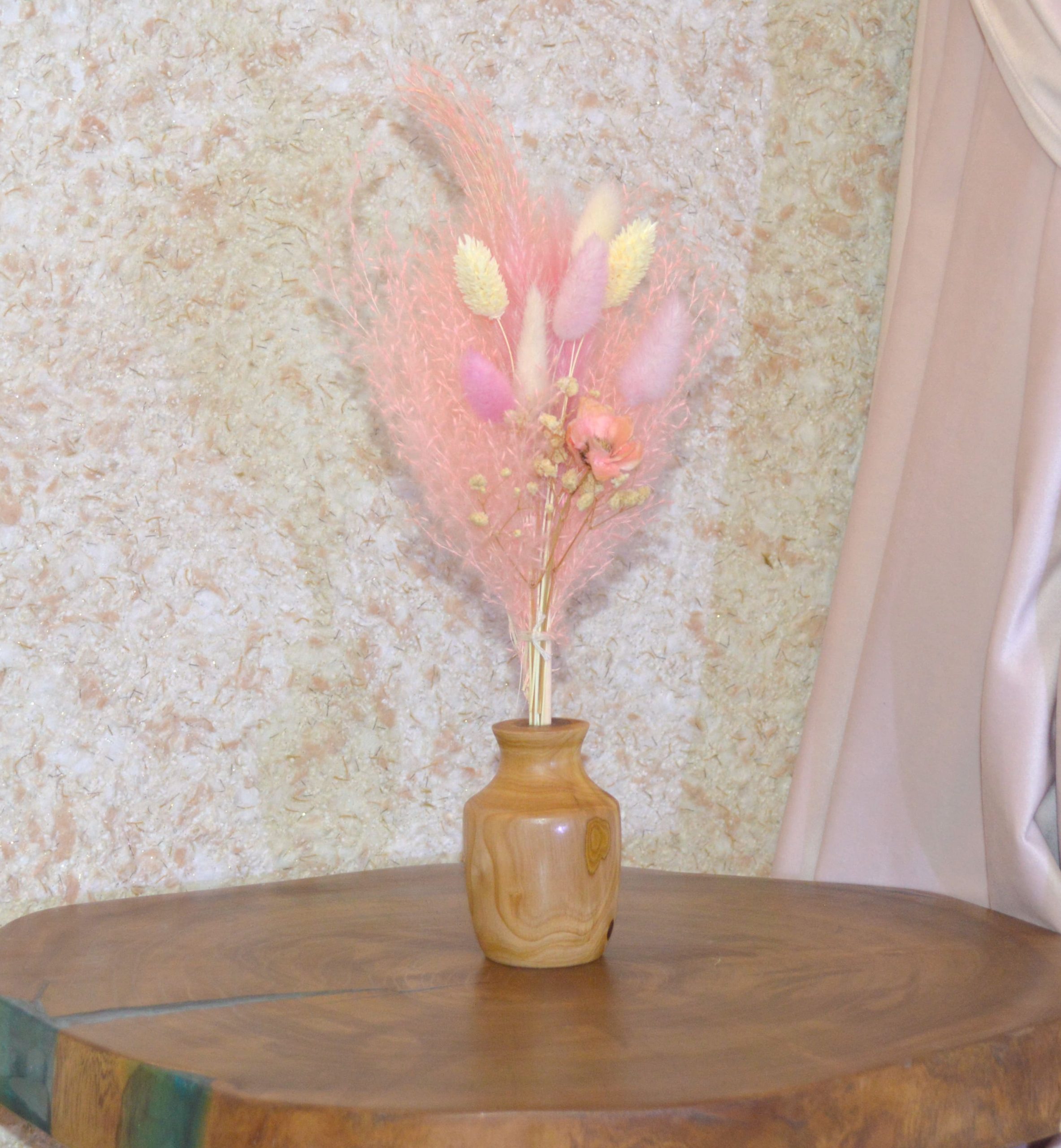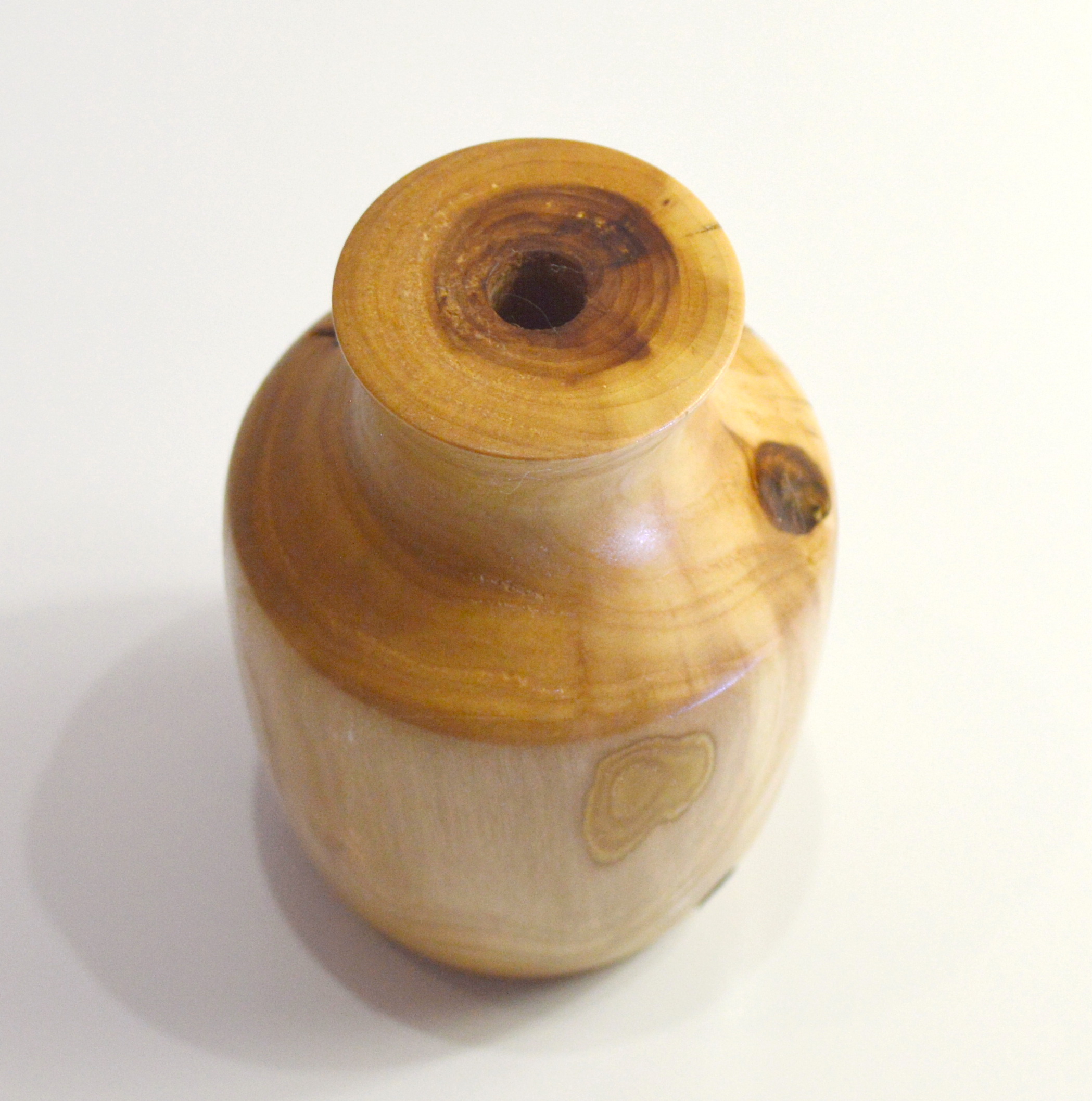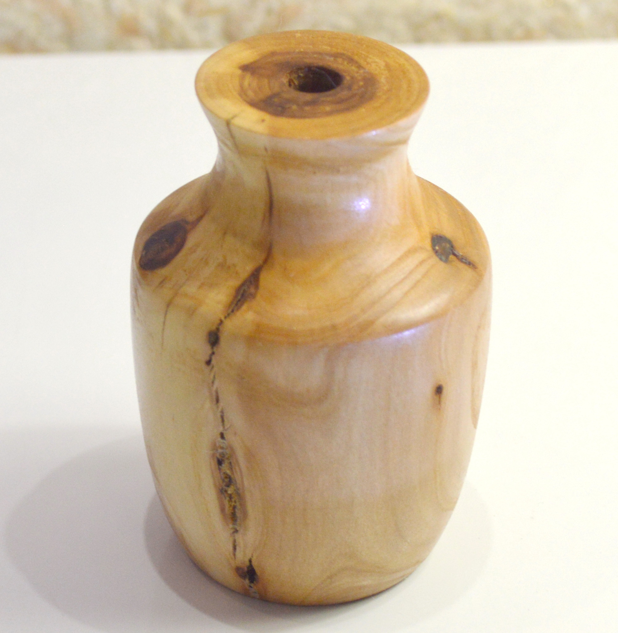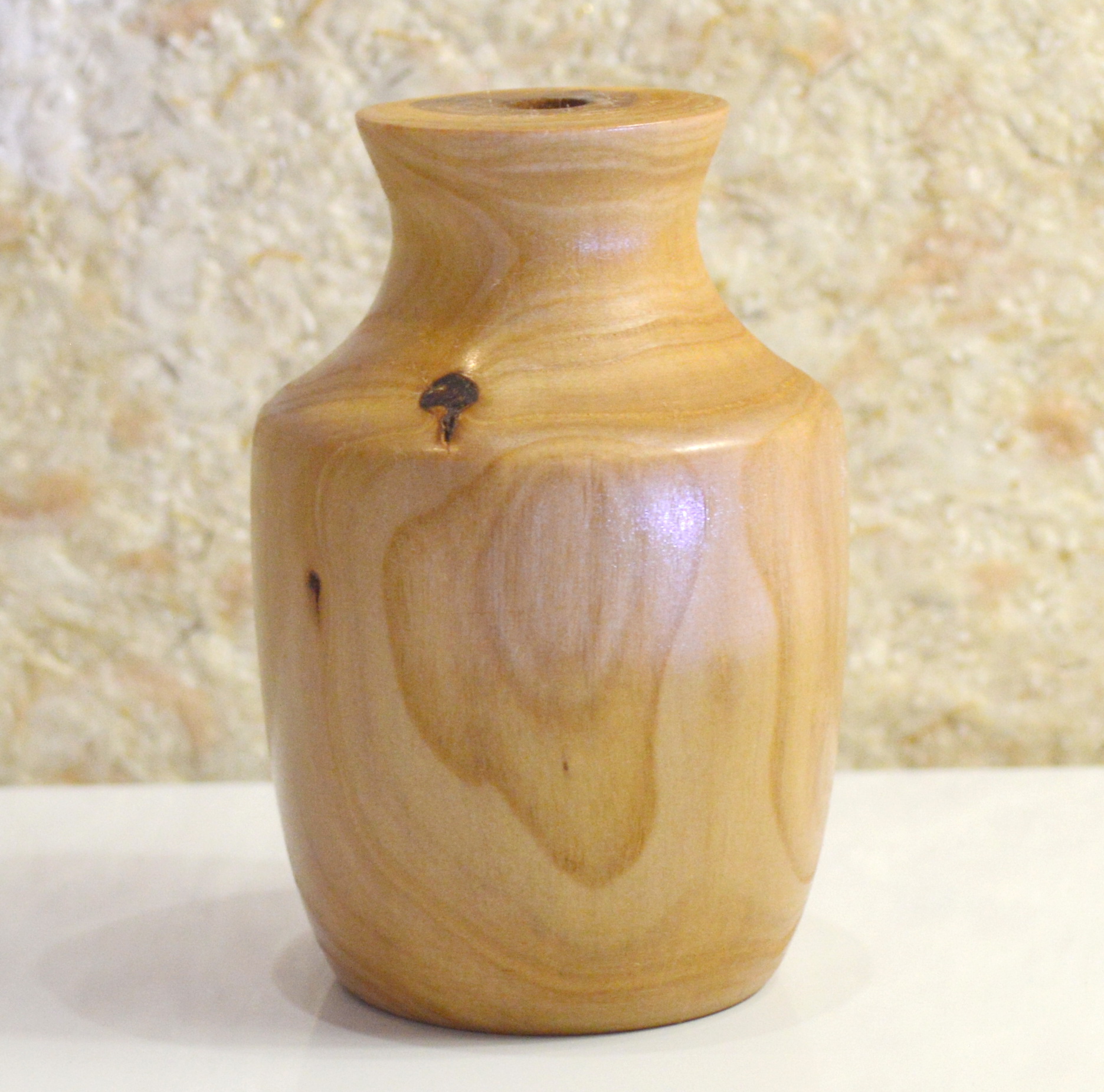 Компактная, красивая, выполненная из массива яблони ваза под цветы сухоцветы. Размеры: высота — 8,5 см, диаметр горловины под стебли — 0,8 см, глубина — 4,6 см. Естественный рисунок природного материала. Покрыта масло-воском. Ручная работа в единственном экземпляре.