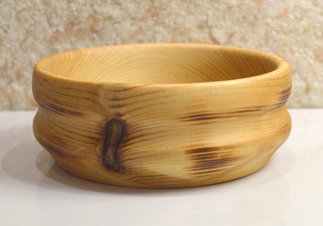 Небольшая, выточенная из массива липы чаша-вазочка под мелкие орешки, семечки, сухофрукты, конфеты. Размеры: высота — 4,7 см, диаметр — 12 см. Естественный рисунок природного материала с небольшим обжигом. Покрыта масло-воском. Ручная работа в единственном экземпляре.